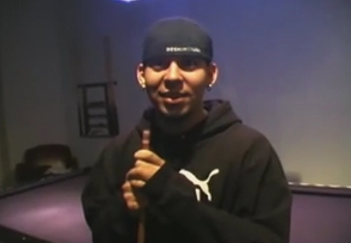 ビリヤードやってる風なマイク氏。
